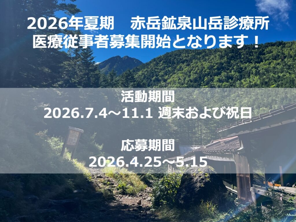 【2026年夏期赤岳鉱泉山岳診療所 医療従事者募集のご案内】